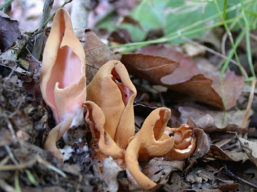 Report: The warm weather and a new site produced a flush of forayers including two new members Patrick and Wei Yu all hoping for exotic goodies.The group was grateful to Allen Coombes and Hilliers for arranging our visit and welcoming us to the grounds. Not long after we started near a fine display of Lepiota aspera ( freesii or acutosquamosa!!) Alan picked up a Paxillus with a thick rolled edge and thick stem which later dropped a lilac spore print and was confirmed as P vernalis. (See Field Mycology Vol 9(1) Jan 2008). This is third UK record we know about but more may well appear as soon as we look at Paxillus involutus in a new light especially in garden borders. Eric came up with another orange brown lepiota that seem to glow in the sunlight. This was tracked down to L ochraceofulva by Stuart, a new species for Hampshire. A clump of huge tall Laccaria growing in long grass had everyone excited for a while but they were just a very large L laccata. Just before lunch an active hornet's nest provided a photo opportunity for the brave, a nearby resting dragonfly was a safer option for the faint hearted. After lunch, under a row of oaks, Roger and Jacquey simultaneously found clusters of Otidea onotica and a few yards away was an Amanita looking like vaginata but is still defying final identification. (It does not have the globose spores of the vaginata group). Sue found a poroid on a Pinus twig that turned out to be Postia hibernica the days's second new species for Hampshire. Rhodocybe truncata with is warty pink spores (now called gemina) turned up again in the arboretum having been found by Graham Mattock previously.