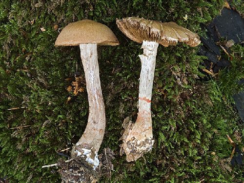 Report: (Alan Lucas) A very good turn out this week with fourteen members and five visitors including Steve and Margaret Kelly from Hertfordshire who were holidaying in the New Forest. Newcomers Chloe and Caitlin not only reduced the average age but brought with them two pairs of sharp eyes. Although we had seen some rain during the past week it was still very dry underfoot but with so many forayers it was hoped we would still find a good number of fungi and possibly some interesting ones too. The first part of the day produced the more common species that we come to expect to find and it was not until late morning when Tina found Amanita porphyria, Chris Gaffney found Cortinarius armillatus and Jacquey found Rhizina undulata on a fire site all of which are rarely seen. We had lunch in a small clearing that usually has some of our old favourites and four were there on this occasion, namely Tyromyces alborubescens, Mycoacia nothofagi, Lentinellus ursinus and Tyromyces fissilis all of which are indicators of long standing beech wood. After lunch we continued to find different fungi from the morning and we soon had another good find Inonotus nodulosus, soon after that Stuart, Alan and Sue were scratching there heads trying to remember the name of a “jelly” fungus but it was no good we needed to go home at look it up. Stuart did the deed and the name is Ascotremella faginea so all in all a good days work. (Note SJS: Ascotremella has striate spores and non bluing asci tips whereas Neobulgaria pura var. Foliacea has smooth spores and blue tips. Photos sent on photo email group.) There were a couple of nice fungi identified at home one new for the group, Conocybe fimetaria on horse dung, and Crustomyces subabruptus found by Sue along with one and possibly two discomycetes than will have to be sent to Brian spooner for identification.