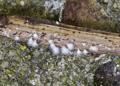 Second British record: Mycena cecidiophila, Seticyphella niveola