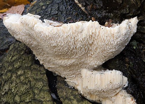 Report: To our surprise Hazel Hill car park was locked when we arrived. Following a quick phone call to the Forestry wardens we were given permission to unlock the car park although this did mean no one could leave early as our cars were locked in until our member with a key returned. The day looked promising following the recent rains and warm weather and indeed this was bourne out by a total of over 120 species by the end of the day. Hazel Hill is a known site for Hericium erinaceus but sadly the specimens, although still present, were past their best. This was compensated for by seeing a fine specimen of Hericium coralloides later on in the day. There were plenty of russulas to keep Eric busy and mycenas for Stuart. Even some cortinarius, not one of the group favourites, were identified and included an unusual species Cortinarius birrus which was tracked down by Alan. Late on in the day Jean-Paul came across a fallen beech with a bracket with unusual daedaeliod pores. Some members of the group were getting near before Alan put us out of our misery by confirming it to be Spongipellis delectans, an uncommon southern species but with a strong foothold in the New Forest. Re-examination of the log the next day revealed we had missed the Ganoderma pfeifferi.