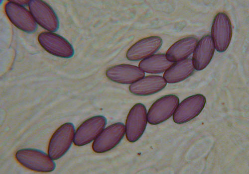 Report: It is extraordinary how often the carpark is the site of an interesting find and this week's foray proved no exception to the rule. Whilst Stuart, Eric and Alan were nattering and waiting for others to assemble Stuart picked up a fallen oak branch and whilst he was looking at one end Eric noticed some small bright lemon yellow cylindrical fruitbodies at the other end. Examination later that day failed to reveal any spores but by the following day little black ends of asci were emerging from the fruitbody. The microscope soon confirmed these to be an Ascobolus and after a bit of research for a key by van Brummelen and discussion on WAB it was decided the initial suggestion of Ascobolus lignatilis to be correct. Shortly after the start of the foray Alan found the uncommon exidia on pine - Exidia saccharina which seems to be the first record for VC12. Later on in the alder carr there were several patches of Cudoniella clavus, the big brother to the oak pin Cudoniella acicularis. JP reminded us there is an even bigger brother C clavus var. grandis which can be up to 2cm across.