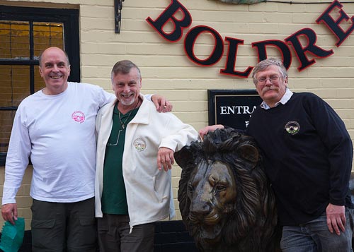 Report: Once again the group had decided to hold its Christmas dinner at the Red Lion in Boldre, an easy decision after the good food and service received in the previous years. For a change we decided to foray at Boldre churchyard not realising that Hordle School were holding their carol service on the same day and were likely to overfill the carpark. However this did mean we were serenaded with carols whilst foraying, an unusual and novel experience for most. The group was hoping to find some of the unimproved 'CHEG' grassland species and despite the late foray four species of waxcap and one trichoglossum were found. Amongst the other recorded species was the group's second record for Peniophora boidinii, having been seen the previous month at IBM, Hursley (see report). At midday the group relocated to the Red Lion where they were joined by a few other members including Gordon Dickson and Ann Leonard. They have both contributed enormously to our understanding of New Forest fungi and in recognition of this and their support to the group over the years a small gift was presented to them. During the foray and meal Stuart accompanied by Eric and Alan were able to model some garments embroidered with the recently designed HFRG logo which should hopefully be sported at next years forays by group members.