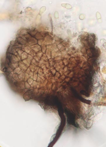 Report: When we walked onto the common we were surprised by how much the vegetation had grown since our last visit. The gorse and young birch cover was now quite extensive and had spread over the known site of the H acetabulum and P leucomelaena which were nowhere to be seen although the weather could have been contributing. Elsewhere there was the occasional larger fungus - Entoloma conferendum (Star Pinkgill) and three 'Coprinus' species helped by the moisture of pony dung. One of these Coprinopsis ephemeroides is a delicate fruitbody a couple of mm across but with a small ring that helps with identification. This was the last outing of what has been a very dry spring season but let us hope the Summer and Autumn will be more productive.