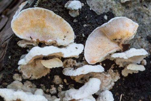 Species list: Agaricus xanthodermus, Agrocybe rivulosa, Aleuria aurantia, Amanita citrina var. citrina, Amanita gemmata, Amanita rubescens var. rubescens, Ampulloclitocybe clavipes, Arrhenia retiruga, Aureoboletus gentilis, Baeospora myosura, Bjerkandera adusta, Boletus badius, Boletus chrysenteron, Boletus edulis, Boletus pruinatus, Bulgaria inquinans, Chlorophyllum rachodes, Clavaria acuta, Clavulina coralloides, Clavulina rugosa, Clavulinopsis corniculata, Clavulinopsis helvola, Clavulinopsis laeticolor, Clavulinopsis luteoalba, Clitocybe fragrans, Clitocybe geotropa, Clitocybe nebularis, Clitopilus prunulus, Cordyceps militaris, Craterellus cornucopioides, Crepidotus variabilis, Crinipellis scabella, Cyathus striatus, Dermoloma cuneifolium, Fuscoporia ferrea, Geastrum triplex, Geoglossum fallax, Geoglossum umbratile, Gliophorus irrigatus, Gliophorus perplexus, Gliophorus psittacinus, Gloeocystidiellum porosum, Gymnopilus penetrans, Gymnopus peronatus, Helvella crispa, Helvella lacunosa, Heterobasidion annosum, Hydnum repandum, Hydropus floccipes, Hygrocybe ceracea, Hygrocybe chlorophana, Hygrocybe conica, Hygrocybe pratensis var. pratensis, Hygrocybe punicea, Hygrocybe russocoriacea, Hygrocybe virginea var. virginea, Hypholoma fasciculare var. fasciculare, Inocybe hystrix, Inocybe sindonia, Laccaria amethystina, Laccaria laccata, Lactarius blennius, Lactarius fluens, Lactarius fulvissimus, Lactarius hepaticus, Lactarius quietus, Lepista nuda, Leptosporomyces fuscostratus, Leratiomyces ceres, Lycoperdon perlatum, Lycoperdon utriforme, Lyophyllum decastes, Macrocystidia cucumis, Macrolepiota mastoidea, Macrolepiota procera var. procera, Mycena galopus var. nigra, Mycena pura, Neonectria coccinea, Octospora rutilans, Otidea onotica, Panellus stipticus, Paxillus involutus, Peniophora quercina, Phaeolus schweinitzii, Phlebia radiata, Phlebiella sulphurea, Phlebiopsis gigantea, Pleurotus ostreatus, Pluteus leoninus, Pluteus semibulbosus, Postia ptychogaster, Psilocybe cyanescens, Ramaria stricta, Ramariopsis subtilis, Resinicium bicolor, Rhodocollybia butyracea, Rickenella fibula, Rickenella swartzii, Russula fragilis var. fragilis, Russula nigricans, Russula nobilis, Russula ochroleuca, Russula puellaris, Russula vesca, Scutellinia scutellata, Skeletocutis amorpha, Skeletocutis vulgaris, Steccherinum ochraceum, Stereum hirsutum, Stereum rameale, Stereum subtomentosum, Thelephora terrestris, Trametes versicolor, Trichaptum abietinum, Tricholoma sulphureum var. sulphureum, Trochila ilicina, Tubaria furfuracea, Volvariella surrecta