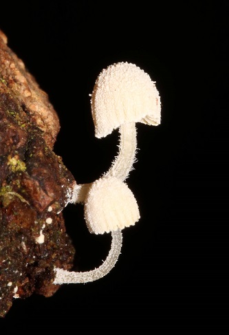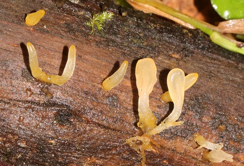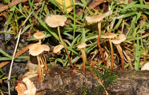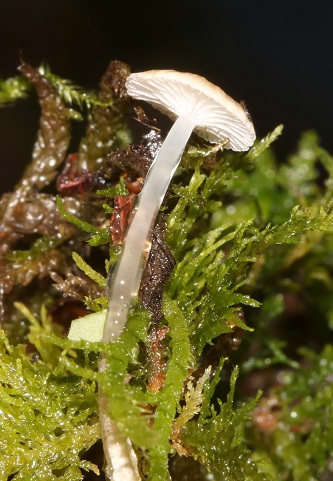 Two diminutive bonnet species were found, one on moss, with a glutinous stipe, was Roridomyces rorida (Dripping Bonnet) and the other, with a granular cap, was on an oak twig, Mycena corynephora (Frosty Bonnet).