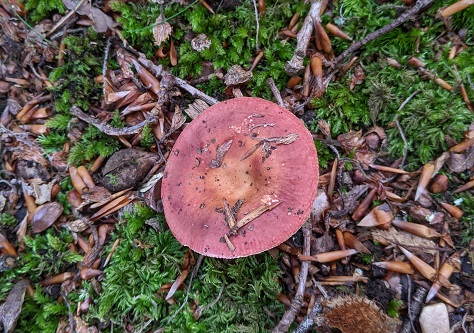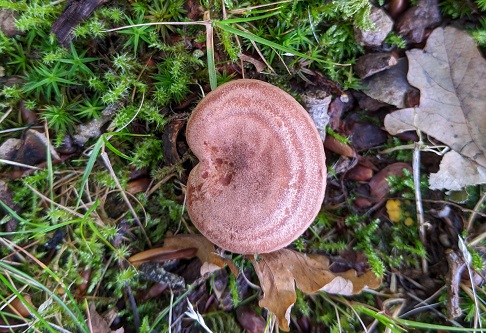 Species recorded: Amanita fulva (Tawny Grisette), Amanita rubescens var. rubescens (Blusher), Bjerkandera adusta (Smoky Bracket), Boletus aereus (Bronze Bolete), Boletus badius (Bay Bolete), Boletus cisalpinus (Bluefoot Bolete), Boletus edulis (Cep), Boletus pulverulentus (Inkstain Bolete), Calocera cornea (Small Stagshorn), Cantharellus cibarius (Chanterelle), Clitopilus prunulus (The Miller), Coprinellus micaceus (Glistening Inkcap), Crepidotus calolepis, Crepidotus cesatii (Roundspored Oysterling), Crepidotus variabilis (Variable Oysterling), Daedaleopsis confragosa (Blushing Bracket), Exidia glandulosa (Witches' Butter), Exidia nucleata (Crystal Brain), Fistulina hepatica (Beefsteak Fungus), Fomitopsis betulina (Birch Polypore), Ganoderma adspersum (Southern Bracket), Gymnopus fusipes (Spindle Toughshank), Hydropus floccipes, Hygrocybe helobia (Garlic Waxcap), Hymenochaete rubiginosa (Oak Curtain Crust), Hypholoma ericaeum, Hypholoma fasciculare var. fasciculare (Sulphur Tuft), Laccaria amethystina (Amethyst Deceiver), Laccaria laccata (Deceiver), Lactarius camphoratus (Curry Milkcap), Lactarius chrysorrheus (Yellowdrop Milkcap), Lactarius quietus (Oakbug Milkcap), Laetiporus sulphureus (Chicken Of The Woods), Leccinum crocipodium (Saffron Bolete), Leccinum cyaneobasileucum (Greyshank Bolete), Megacollybia platyphylla (Whitelaced Shank), Mucidula mucida (Porcelain Fungus), Mycena filopes (Iodine Bonnet), Mycena haematopus (Burgundydrop Bonnet), Mycena pelianthina (Blackedge Bonnet), Neobulgaria pura var. pura (Beech Jellydisc), Phallus impudicus var. impudicus (Stinkhorn), Pleurotus ostreatus (Oyster Mushroom), Pluteus aurantiorugosus (Flame Shield), Pluteus cervinus (Deer Shield), Polyporus leptocephalus (Blackfoot Polypore), Postia subcaesia (Blueing Bracket), Psathyrella piluliformis (Common Stump Brittlestem), Rickenella fibula (Orange Mosscap), Russula aeruginea (Green Brittlegill), Russula atropurpurea (Purple Brittlegill), Russula claroflava (Yellow Swamp Brittlegill), Russula cyanoxantha (Charcoal Burner), Russula fragilis var. fragilis (Fragile Brittlegill), Russula graveolens, Russula nigricans (Blackening Brittlegill), Russula nobilis (Beechwood Sickener), Russula puellaris (Yellowing Brittlegill), Russula velenovskyi (Coral Brittlegill), Russula vesca (The Flirt), Scleroderma verrucosum (Scaly Earthball), Stereum hirsutum (Hairy Curtain Crust), Thelephora terrestris (Earthfan), Trametes gibbosa (Lumpy Bracket), Trametes versicolor (Turkeytail), Tremella foliacea (Leafy Brain), Trochila ilicina (Holly Speckle), Tubaria conspersa (Felted Twiglet)