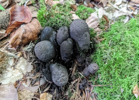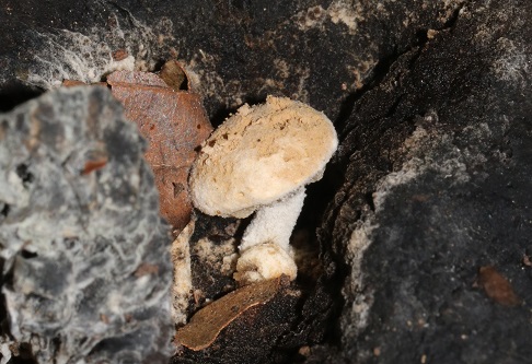 As we struck off the path and into a stand of Beech, we soon noticed a plethora of Hydnum repandum (Wood Hedgehog) and the decaying remains of what could well have been Russula nigricans (Blackening Brittlegill). On a few of the latter we were pleased to find the parasitic fruit-bodies of Asterophora lycoperdoides (Powdery Piggyback), the caps of which disintegrate into a mass of powdery brown spores prior to dispersal.