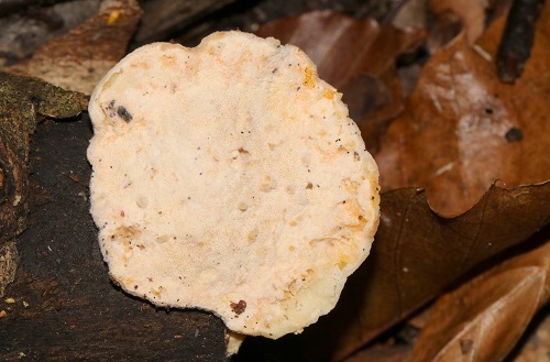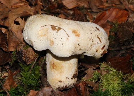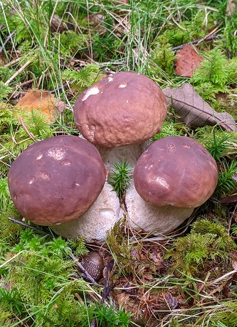 A nice early find, in pine litter, was Auriscalpium vulgare (Ear Pick Fungus) and there was a notable abundance of Boletus edulis (Cep) including some super-sized specimens. On fallen logs of the respective trees, we found Daedalea quercina (Oak Mazegill) and Lenzites betulinus (Birch Mazegill) as well as Tyromyces chioneus (White Cheese Polypore) and Fomitopsis pinicola (Red-belted Bracket).