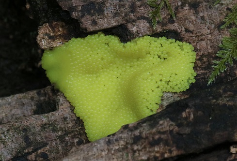 On our way back, there was a large specimen of Cortinarius violaceus (Violet Webcap), Lactarius vellereus (Fleecy Milkcap) and an almost luminous, greenish-yellow slime-mould, Stemonitis flavogenita.