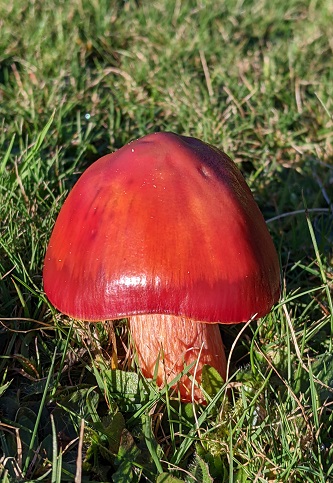 We then headed back across the lawns, noting Hygrocybe coccinea (Scarlet Waxcap) and the scarce Lepista panaeolus (Spotted Blewit).