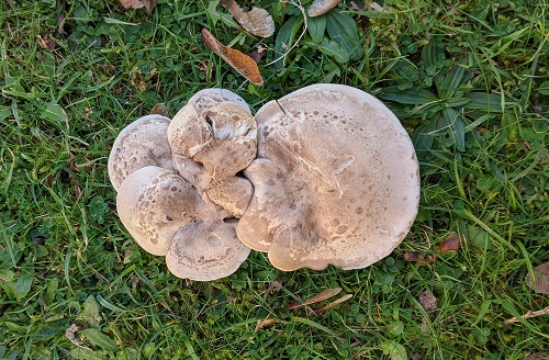 A final sweep of the flowerbeds added Sparassis crispa (Cauliflower Fungus) and Tricholoma terreum (Grey Knight).
